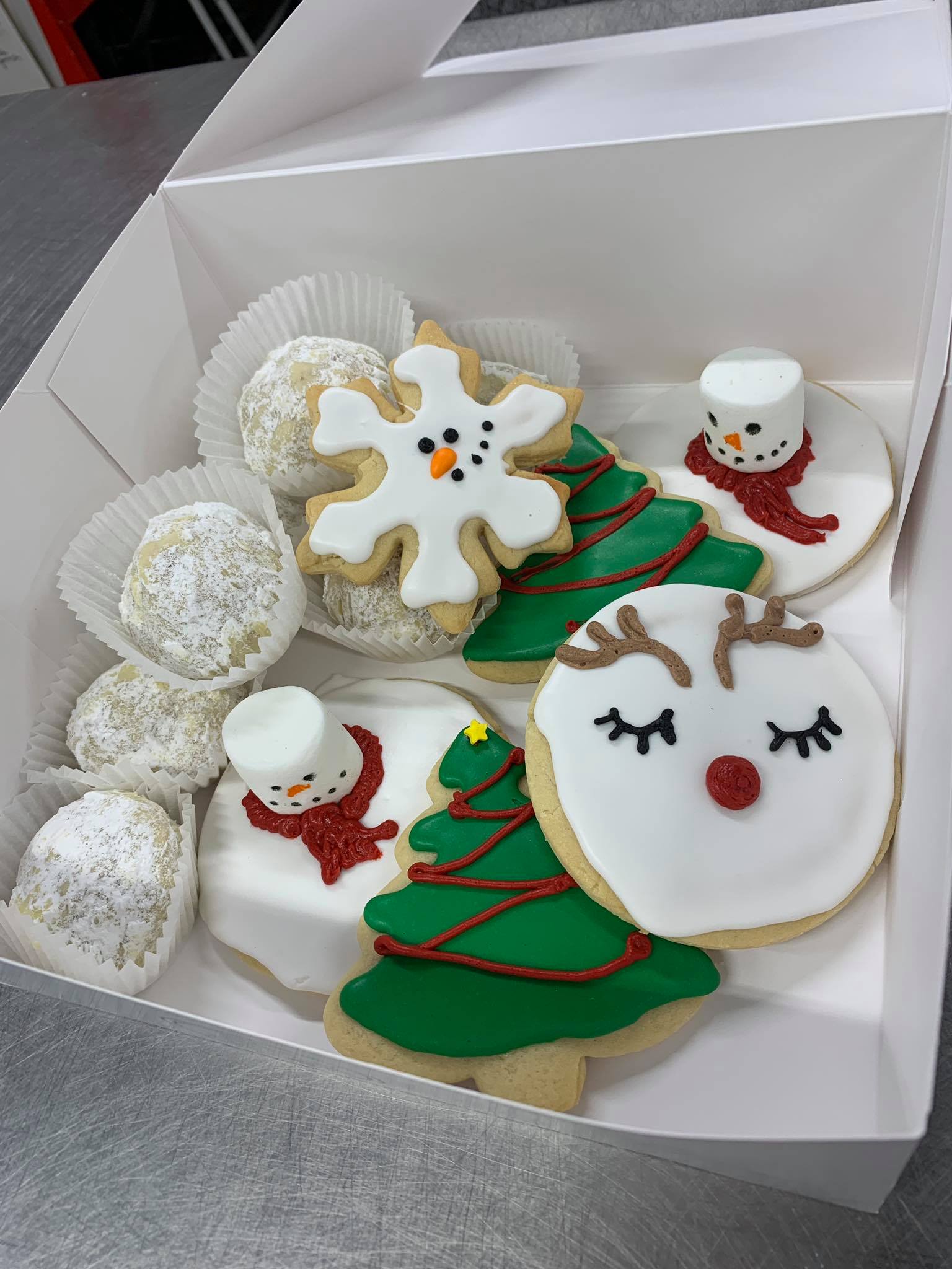 Classic iced sugar cookies in your choice of Christmas trees, melting snowmen, or reindeer. Looking for a different shape? Let us know what you have in mind and we’ll let you know if we can do it! Can’t decide which shape you want? Mix and match in quantities of 4 or more to make your ideal box.